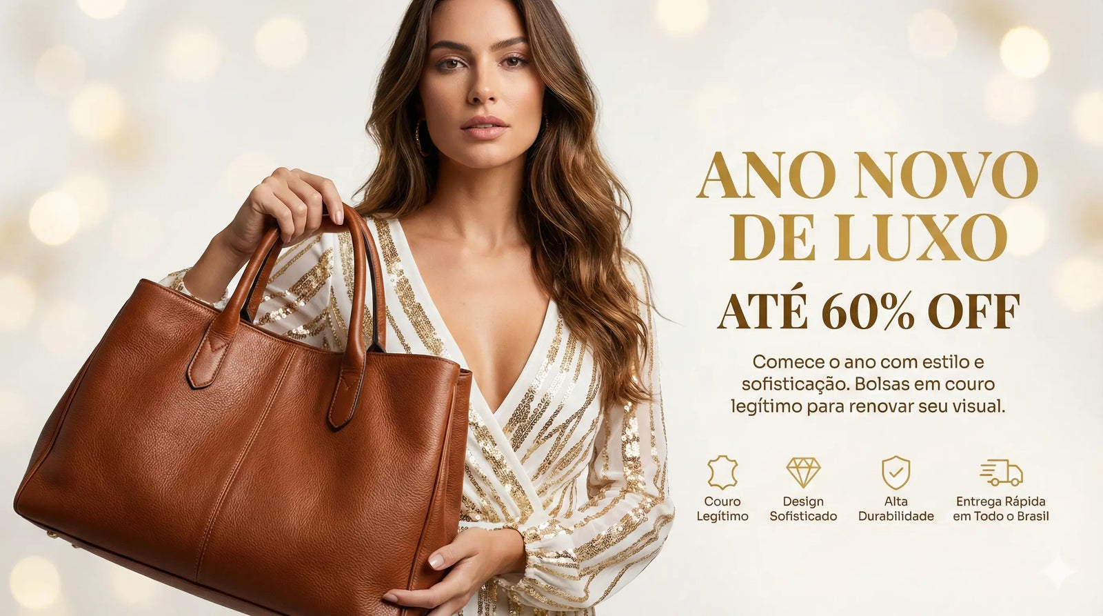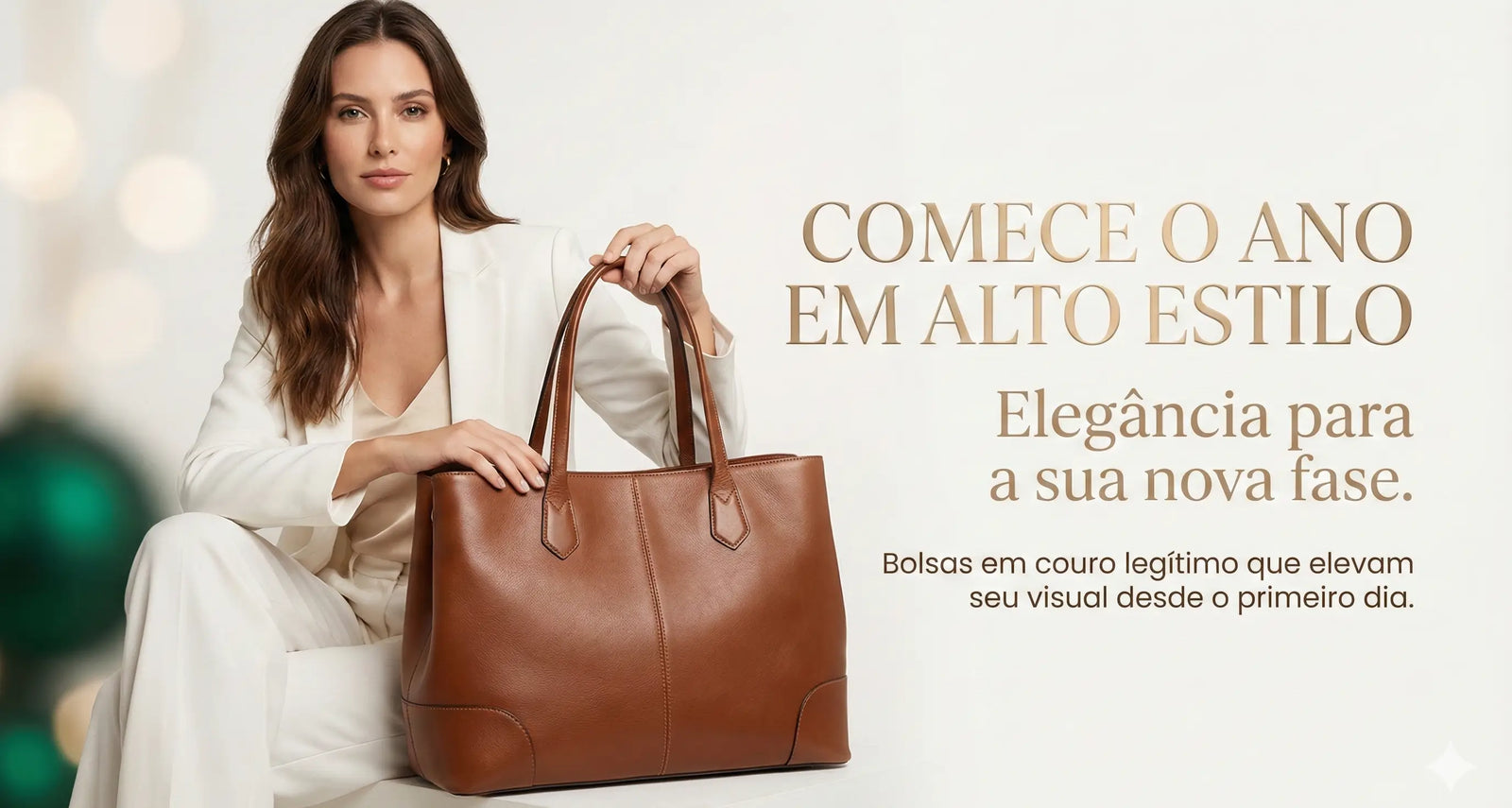 Kit Premium em Couro Genuino - Bolsa + Carteira + Carteira de Mão + Necessaire de Brinde